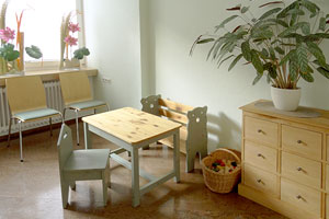 Therapieraum; eine therapeutische Arbeit in Kabinen lehnen wir